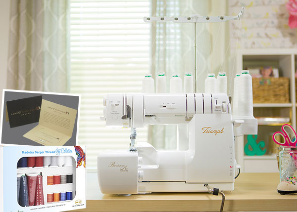 Purchase a Baby Lock Triumph and receive a 2-year Love of Knowledge Membership and a Madeira Serger Thread Collection. Offer valid exclusively through authorized and participating Baby Lock Retailers in the United States, October 1, 2018 – December 31, 2018.
