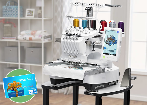 Purchase a Baby Lock Valiant Multi-Needle embroidery machine (LOADED with extras) by September 30th, 2018 and receive a $300 gift card as a bonus!