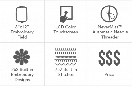 The Baby Lock Aerial sewing and embroidery machine features include: