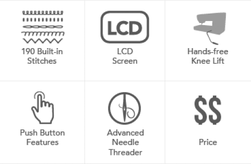 - 190 built-in stitches including 10 one-step buttonholes