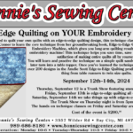 We are SEW excited to be hosting an Edge to Edge workshop featuring Amelie Scott Designs! September 12th – September 14th, 2024 we will have Christine Conner from Amelie Scott Designs teaching us the core techniques that you long-arm quilting results with your home embroidery machine! This can help you save time, save money, and […]