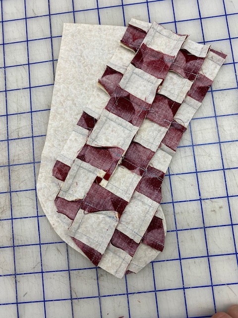 Lay Template on top of front and cut out template shape from pieced front. Iron Interfacing onto the front piece and backing (optional).
