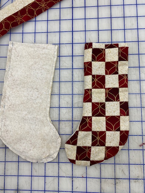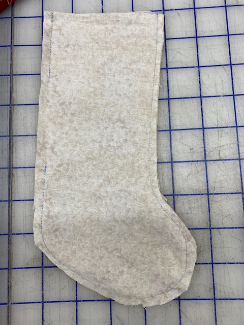 Cut out 1 backing, 2 lining, and 2 interfacing stockings using the template.