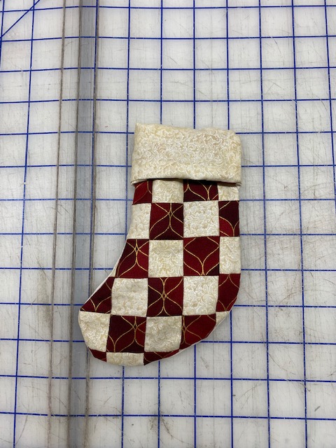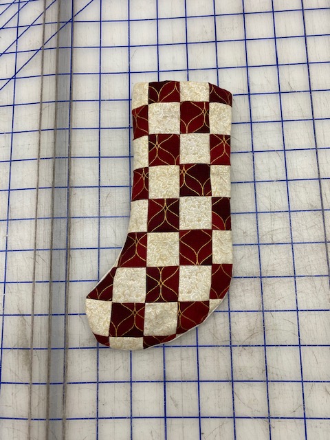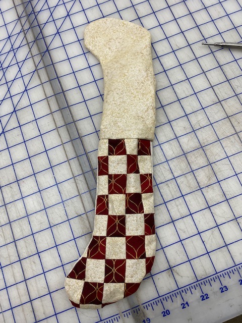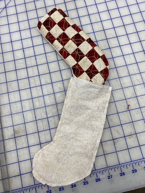 Lay the Front and Back pieces on top of each other, right sides together and sew all around the sock using 1/4″ seam, leaving the top open.