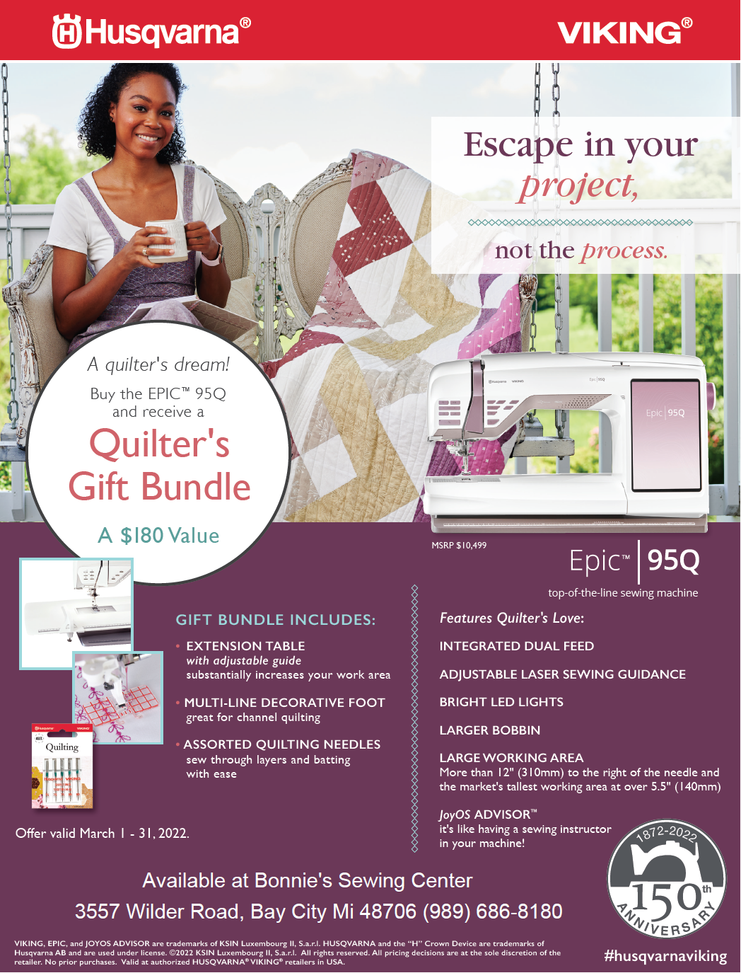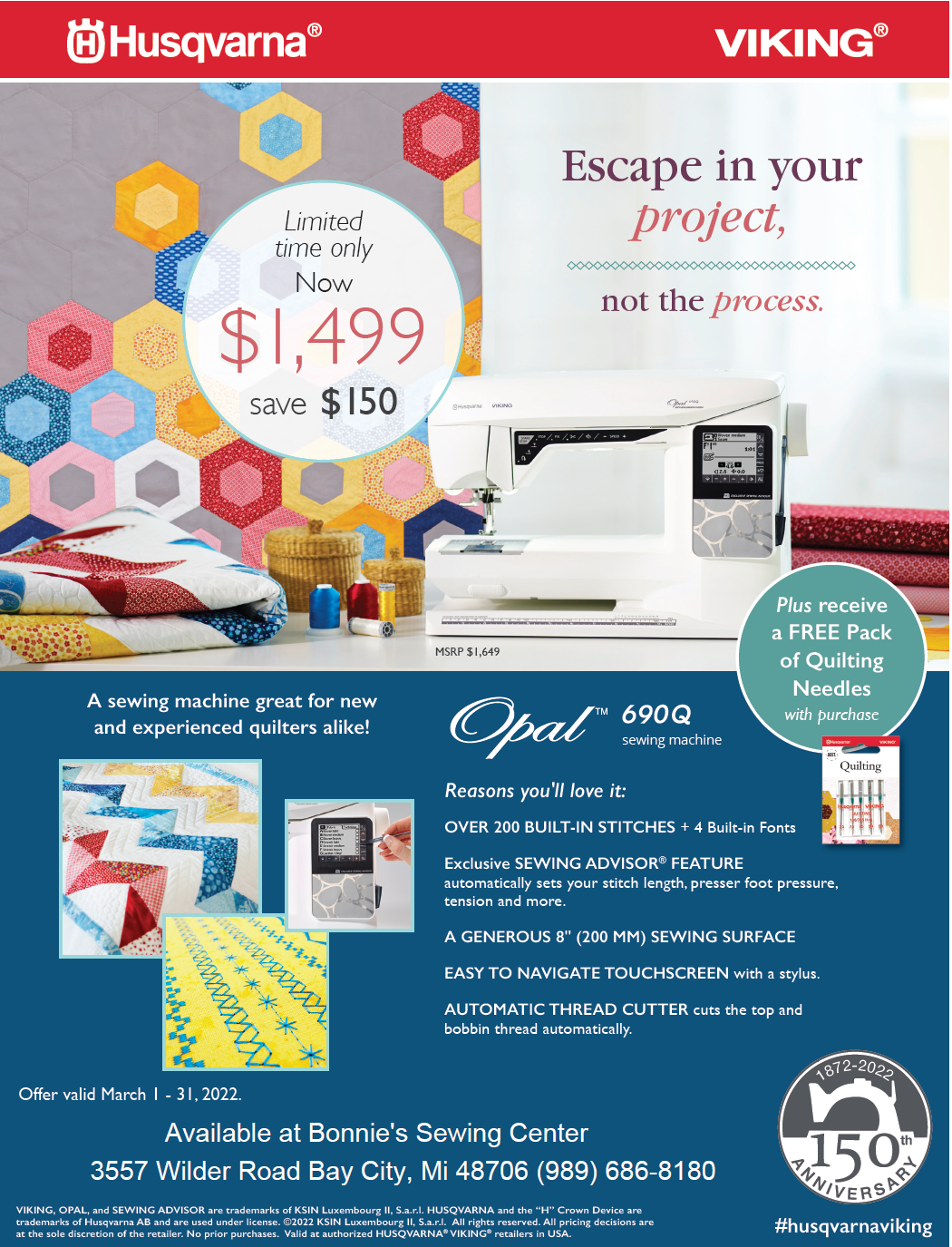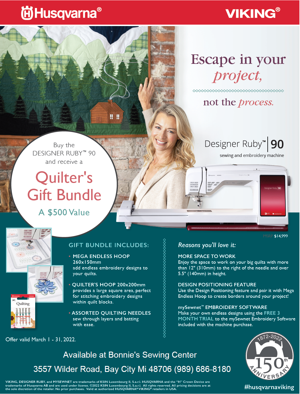 Great deals for the month of March brought to you by Husqvarna Viking (and Bonnie’s Sewing Center of COURSE)!
