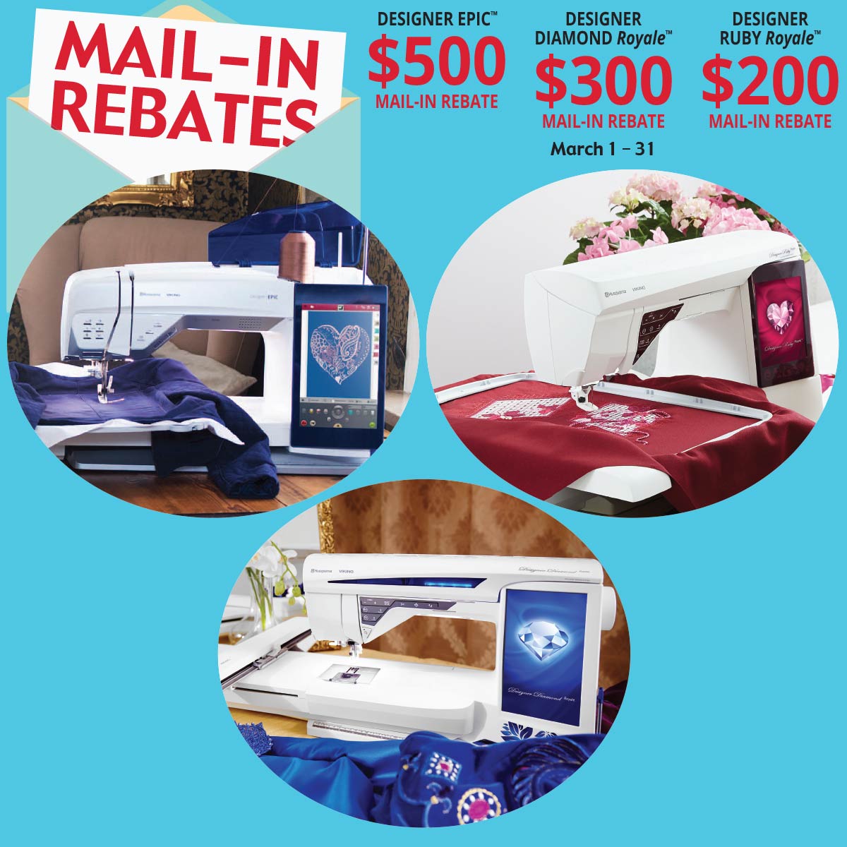 Purchase a Husqvarna Viking Designer EPIC, Designer Diamond Royale or Designer Ruby Royale and immediately save big $$$..