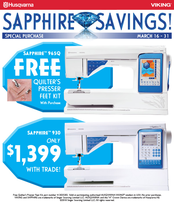 In honor of national quilting month Husqvarna Viking is offering special deals on two of the most popular sewing/quilting machines on the market…