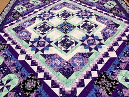 The Aubergine quilt was designed especially for those that love purple! Or to convert those who didn’t think they were. Aubergine Block of the Month program features Kay England’s Purple Majesty collection. The word aubergine is French for eggplant – the purple-black color of eggplant being one of the rich colors in this regal collection. The array of colors of lavender, mauve, and of course purple with a touch of dusty blue and cool green give this quilt the eye catching appeal!