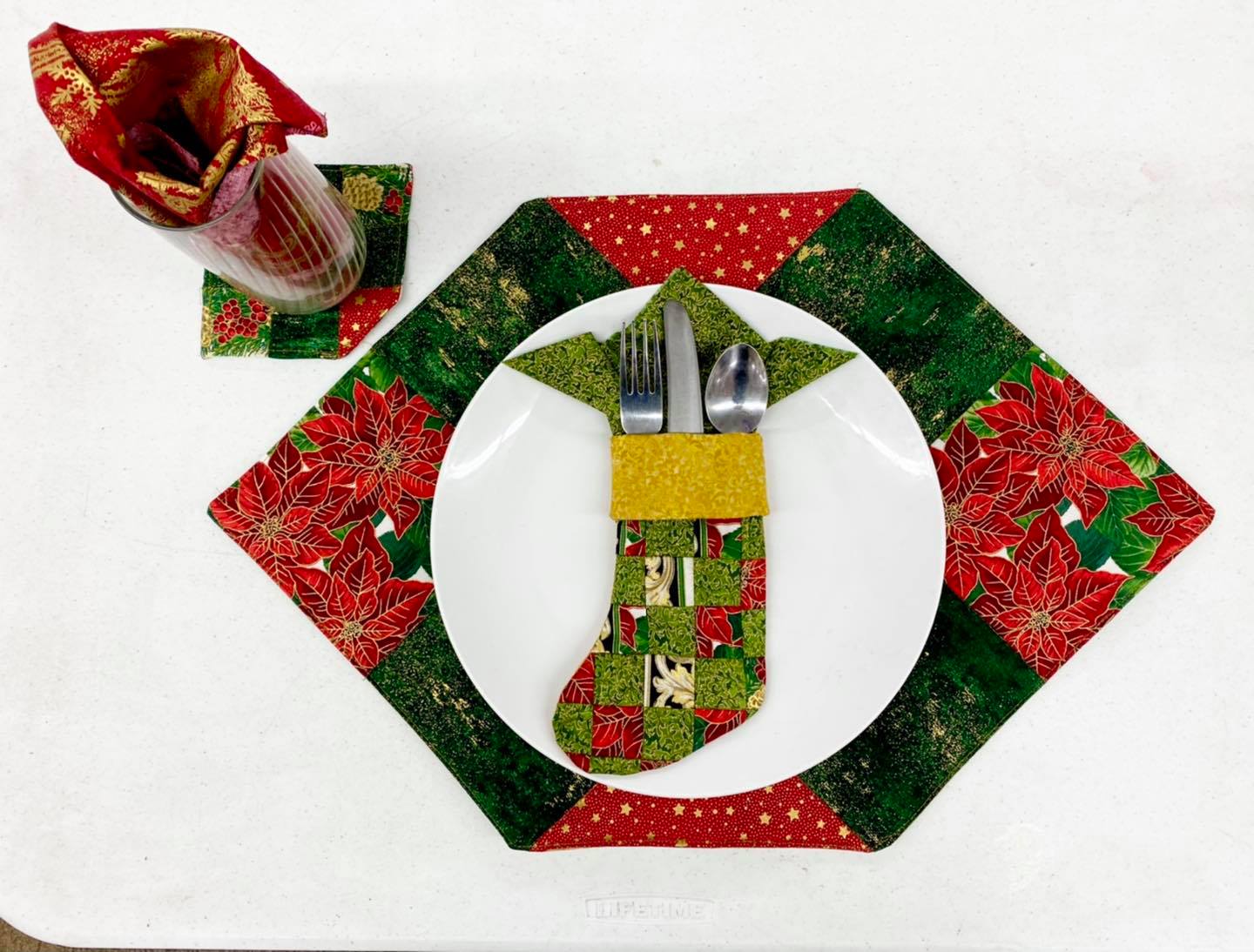 Don’t like long placemat? Cut off all four corners and make a octagon placemat and coasters!