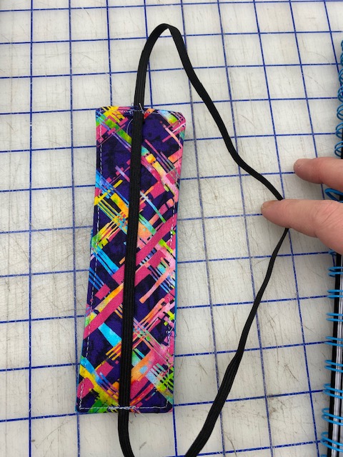 Lay the elastic along the back of the bookmark lengthwise, making sure to center it, and stitch along the top and bottom to secure it. Make sure to double stitch to keep it secure.